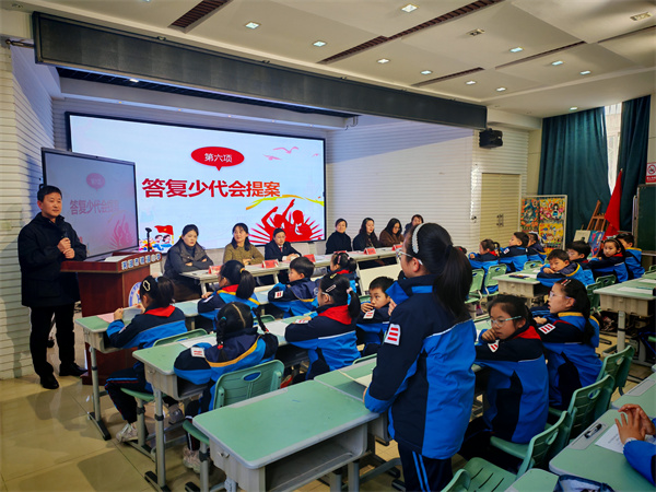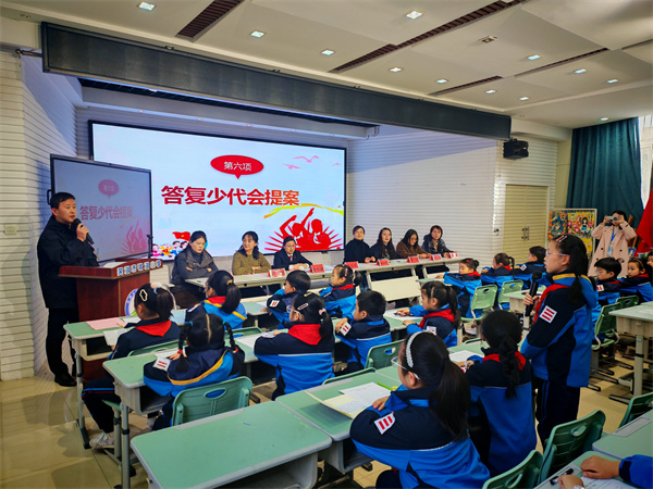 提案答复环节成为大会一大亮点。本次少代会共收到38份红领巾小提案,内容涵盖校园建设、课程设置、实践活动等多个方面。经过认真评选,两条优秀提案获得表彰,王校长现场对提案进行了细致答复。这一环节充分体现了学校对少先队员主体地位的尊重,展现了队员们参与校园民主管理的积极性和责任感。