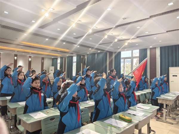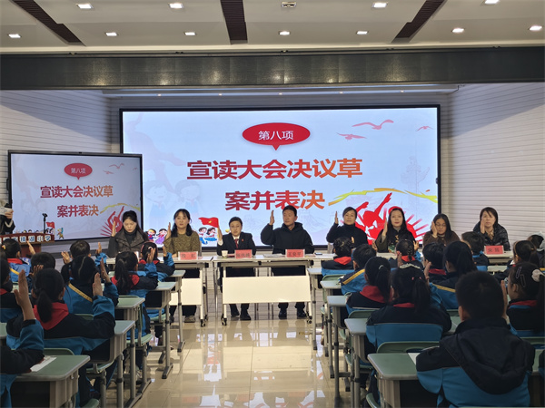 伴随着铿锵有力的出旗曲,旗手迈着坚定的步伐护卫队旗入场,全体代表齐声高唱《中国少年先锋队队歌》,嘹亮的歌声在会场回荡,大会在庄严的仪式中拉开序幕。