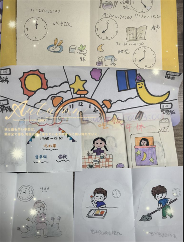 翻开一本本“时间小书”,仿佛走进了一个个充满童趣与智慧的时间世界。精美的封面设计、清晰的时间刻度、生动的手绘插图、工整的书写,无不展现出孩子们认真的态度和丰富的想象力。每一页都凝聚着孩子们对时间的理解,每一页都记录着他们成长的足迹。